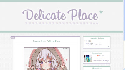 Ah, e quem acompanha o blog e os posts a um tempo, também sabe que eu não sou nada criativa com nomes. Ela é tão linda que não sai, então o nome do layout ficou "Delicate Place", apesar de que, na minha opinião, não vi nada delicado u.u